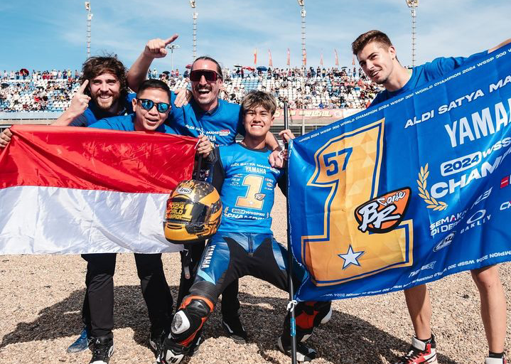 rodaduakita.xyz – Aldi Satya Mahendra, pembalap muda berbakat asal Bantul, Yogyakarta, dipastikan akan naik kelas ke ajang WorldSSP (World Supersport) pada musim 2025. Setelah sukses menjadi Juara Dunia World Supersport 300 (WorldSSP300) musim 2024, Aldi mendapat kesempatan istimewa dari Yamaha Racing untuk berkompetisi di level yang lebih tinggi.