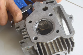 Untuk mengetahui dengan cepat kebocoran yang terjadi pada katup kita bisa tiru cara yang dilakukan oleh Tri Wahyanto mekanik dari bengkel Serba Jaya Motor. “Untuk mengetahui kebocoran yang terjadi pada katup kita bisa menggunakan cairan bensin yang ditaruh di ruang bakar,”buka pria yang juga berprofesi sebagai guru ini.