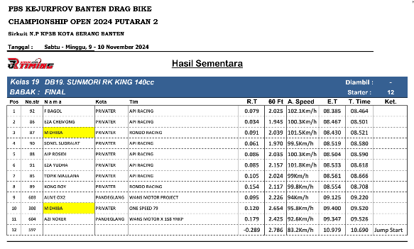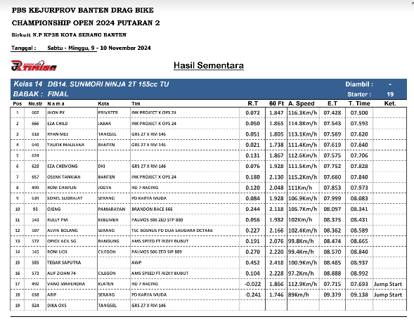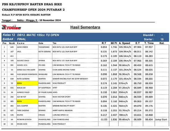 Hasil Dragbike Banten 2024 Hasil Dragbike Banten 2024